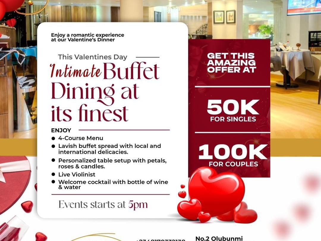 - Buffet @ 50,000 per person & 100,000 for Couples